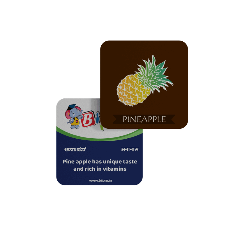 Categories are as follows: i) Alphabets ii) Numbers iii) Fruits & Vegetables iv) Animal Kingdom v)Shapes vi)World Monuments vii) Space viii) Transport
